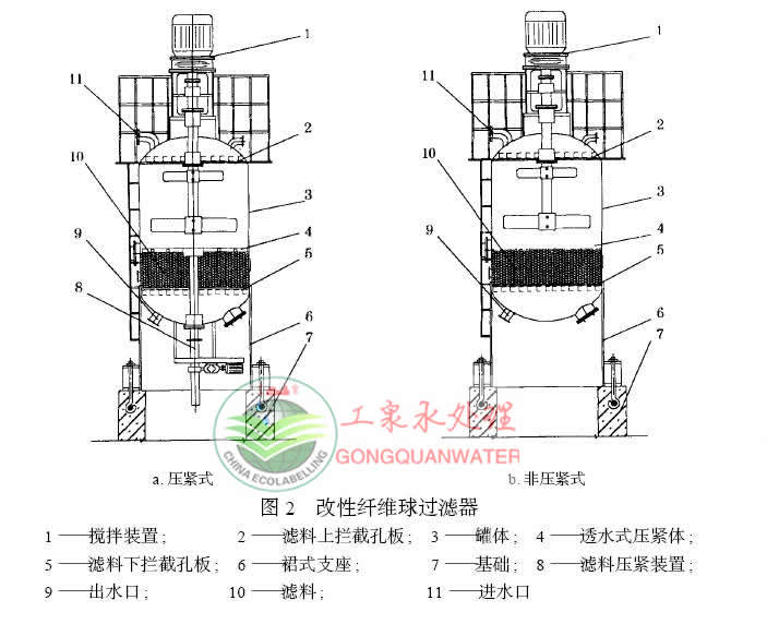 4、改性纖維球過(guò)濾器占地面積小:在相同的過(guò)濾器流量下,占地面積為傳統(tǒng)活性炭及石英砂過(guò)濾器的1/3以下。